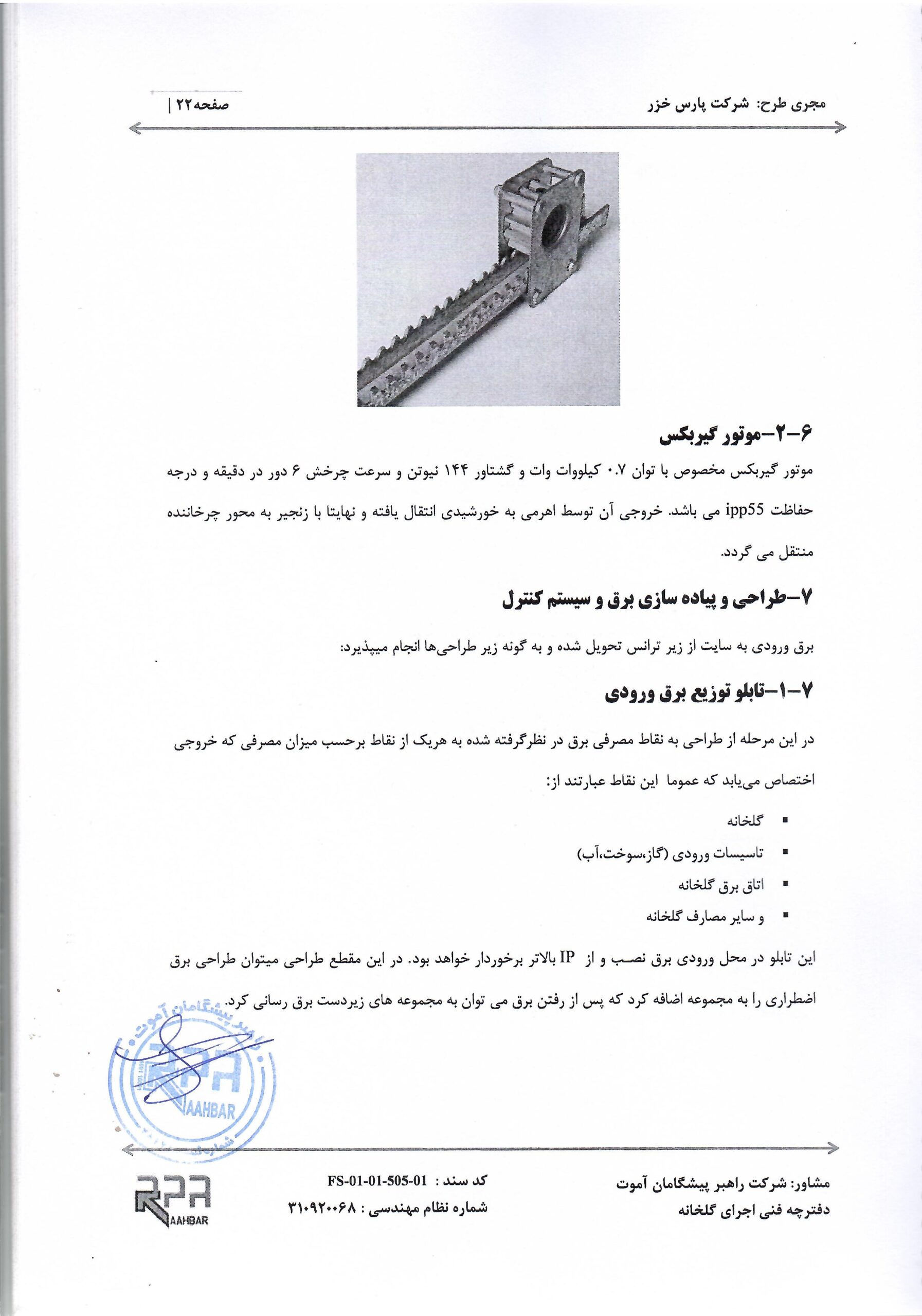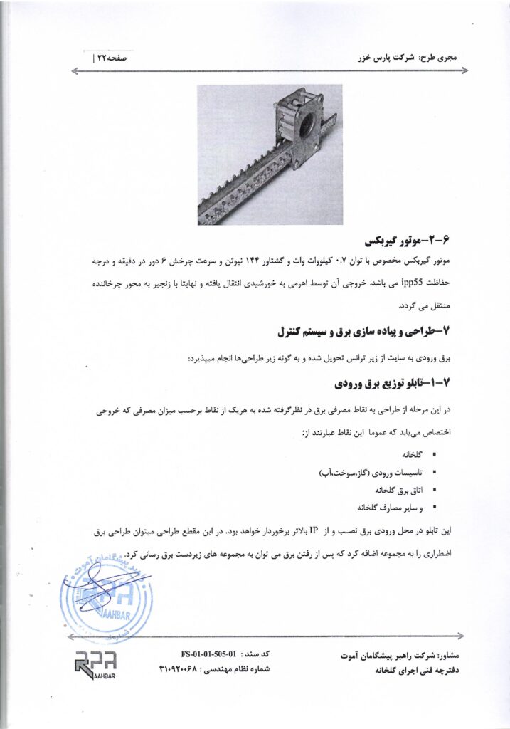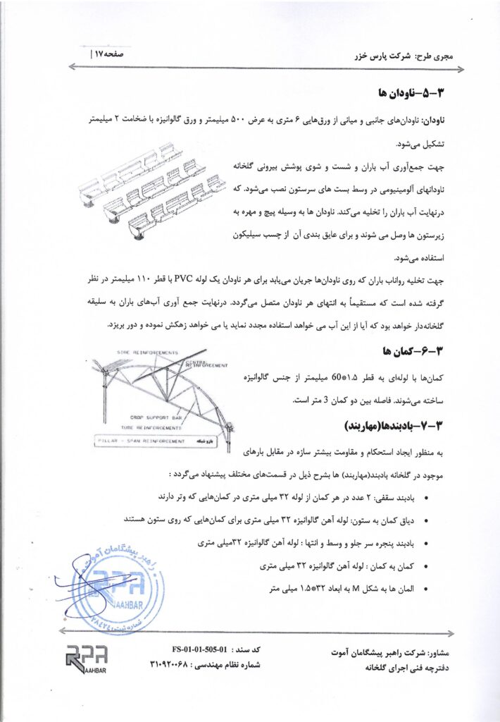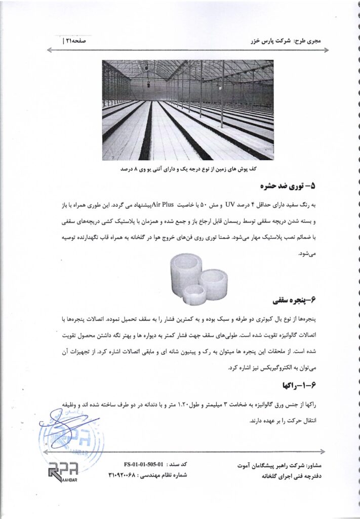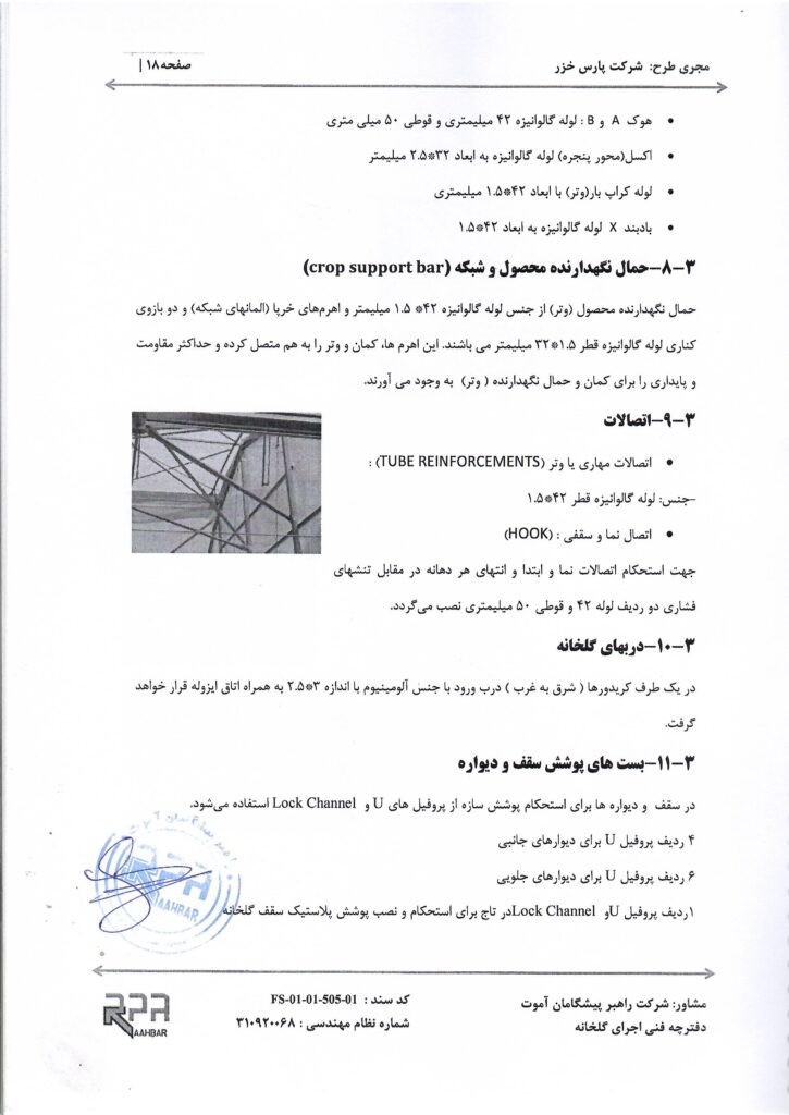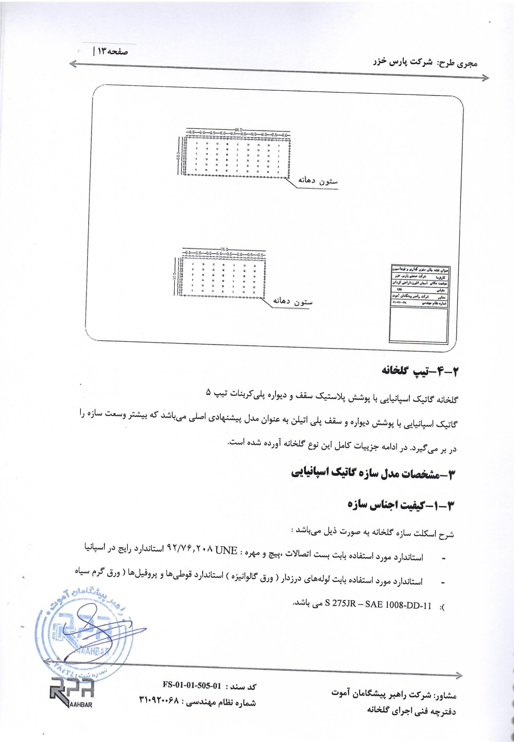 شرکت صنعتی پارس خزر (سهامی عام) در نظر دارد که یک واحد گلخانه به مساحت 12768 متر مربع را در شهرستان گلسار کرج احداث نماید. سازنده باید مورد تایید سازمان نظام مهندسی کشاورزی باشد.
