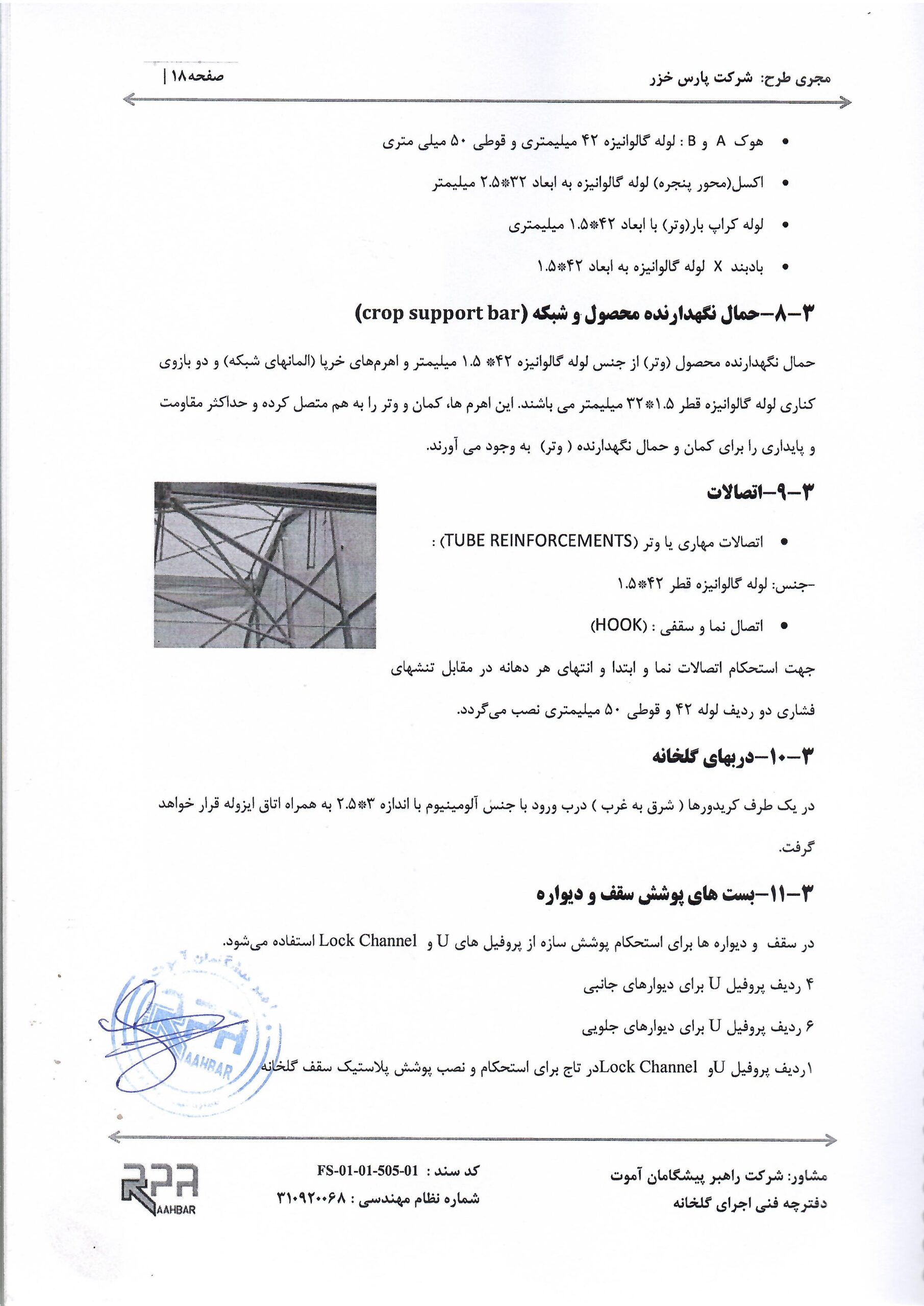 مشخصات مواد اولیه برای ساخت گلخانه:
