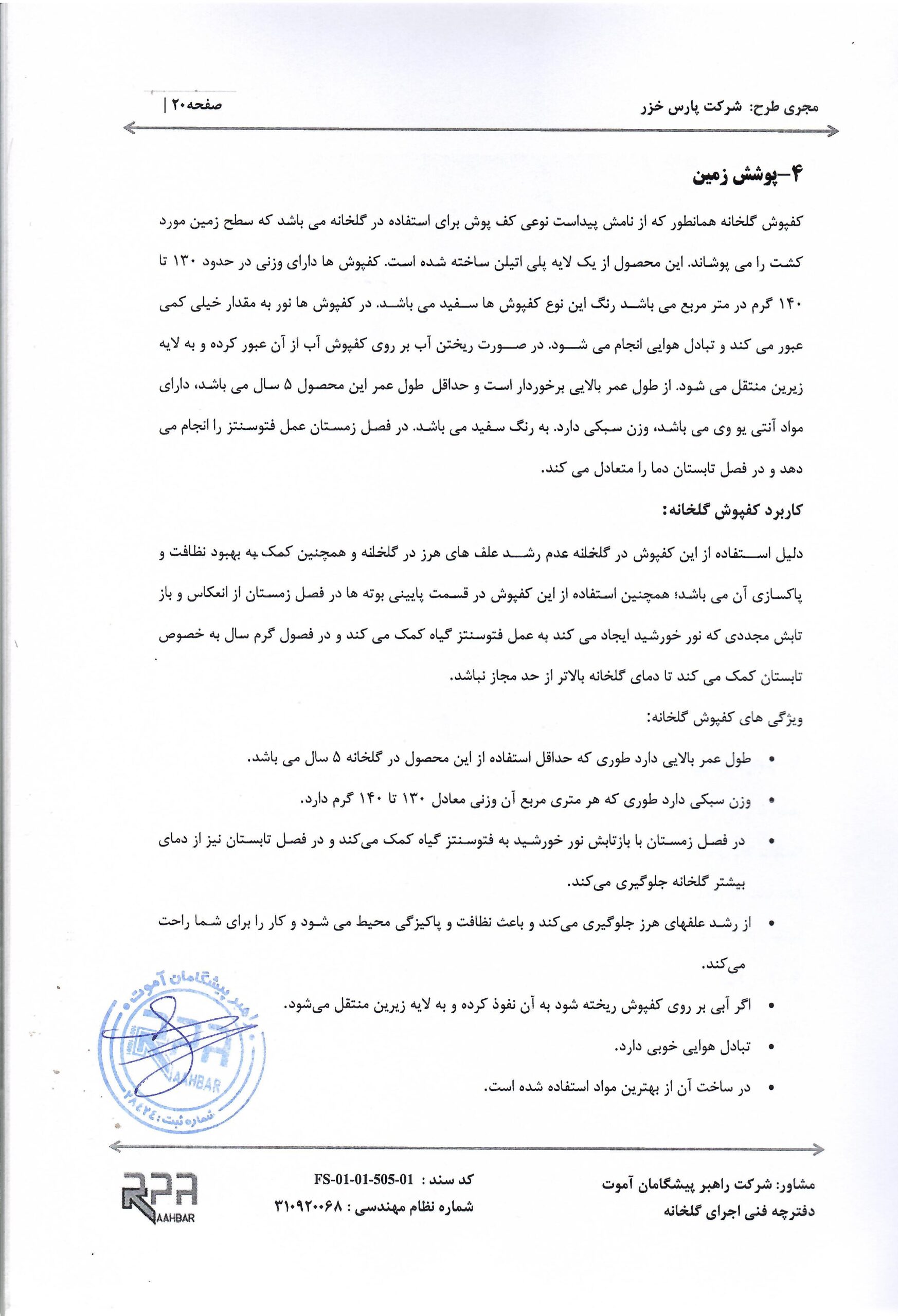 3- پوشش سقف از جنس پلی اتیلن با برند پرشین و یا ثمن